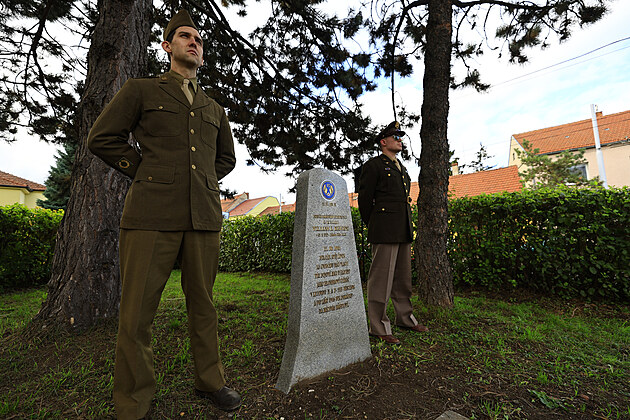 Pietní akt k uctění památky amerického pilota Williama L. Kigginse u jeho památníku na slatinském hřbitově. Jde o jediného Američana, který na území Brna padl ve druhé světové válce. (11. října 2024)