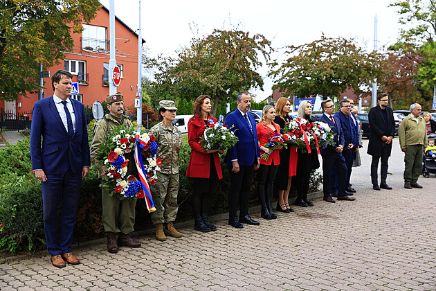 Pietní akt k uctění památky amerického pilota Williama L. Kigginse u jeho památníku na slatinském hřbitově. Jde o jediného Američana, který na území Brna padl ve druhé světové válce. (11. října 2024)