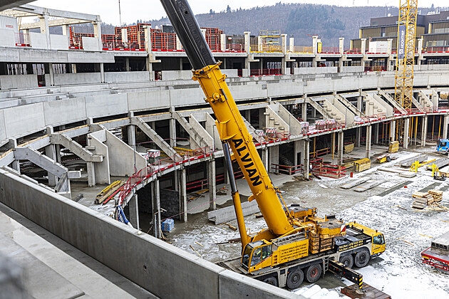 Stavba multifunkční arény v Brně pokračuje, na začátku roku 2025 je ve zhruba dvouměsíčním skluzu oproti harmonogramu. (16. ledna 2025)