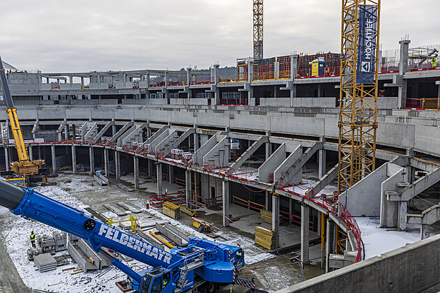 Stavba multifunkční arény v Brně pokračuje, na začátku roku 2025 je ve zhruba dvouměsíčním skluzu oproti harmonogramu. (16. ledna 2025)