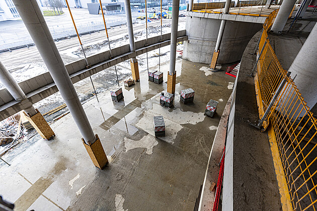 Stavba multifunkční arény v Brně pokračuje, na začátku roku 2025 je ve zhruba dvouměsíčním skluzu oproti harmonogramu. (16. ledna 2025)