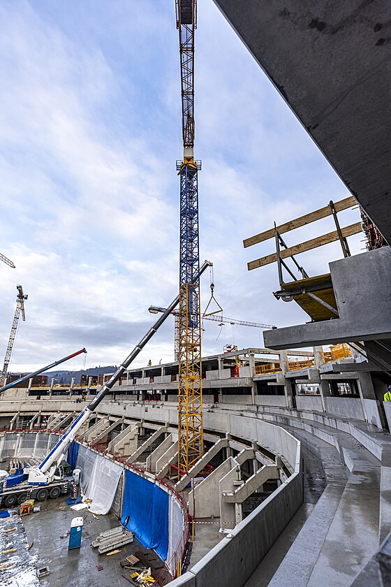 Stavba multifunkční arény v Brně pokračuje, na začátku roku 2025 je ve zhruba dvouměsíčním skluzu oproti harmonogramu. (16. ledna 2025)