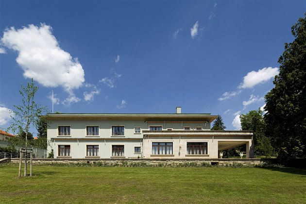 Fasádu člení obdélníková okna se šambránami z hořického pískovce a spišského travertinu.