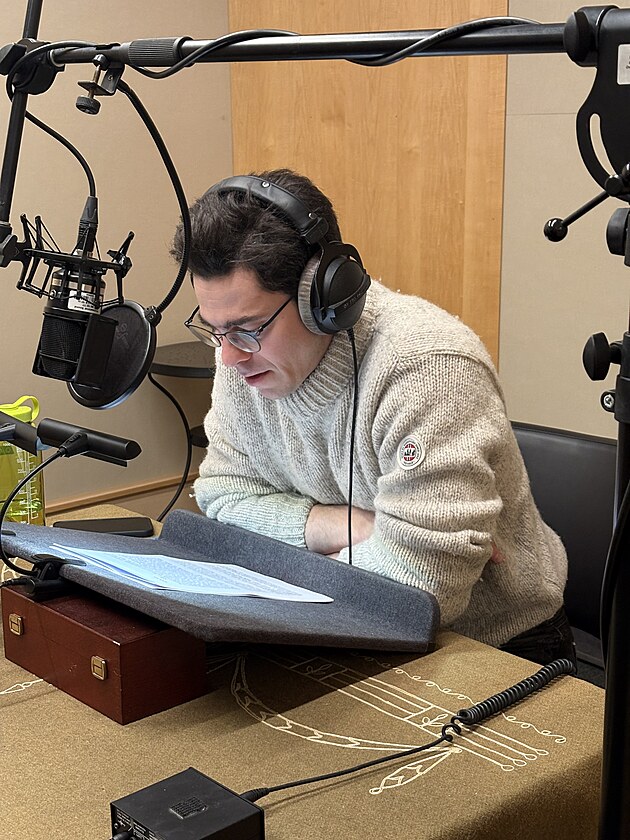Marek Adamczyk při čtení audioknihy Našeptávači.