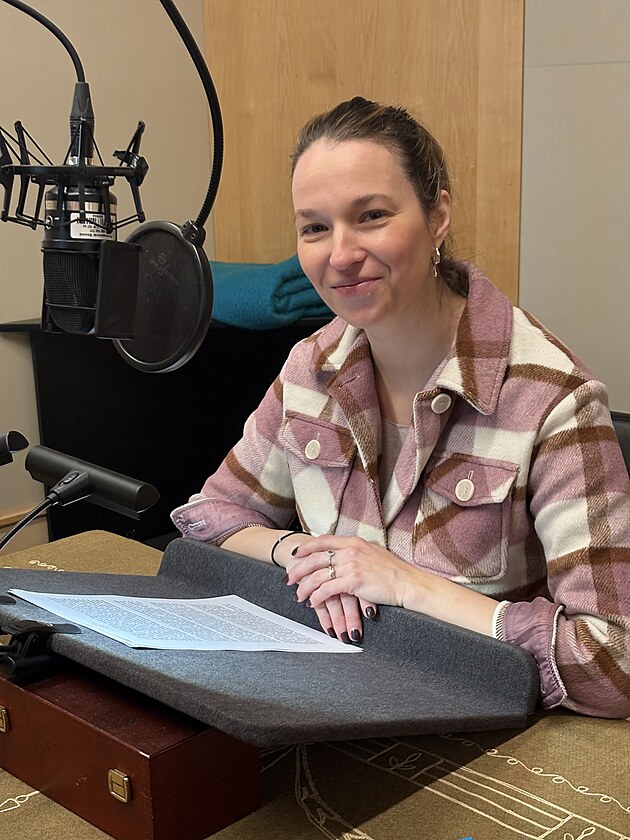 Berenika Kohoutová při čtení audioknihy Našeptávači.