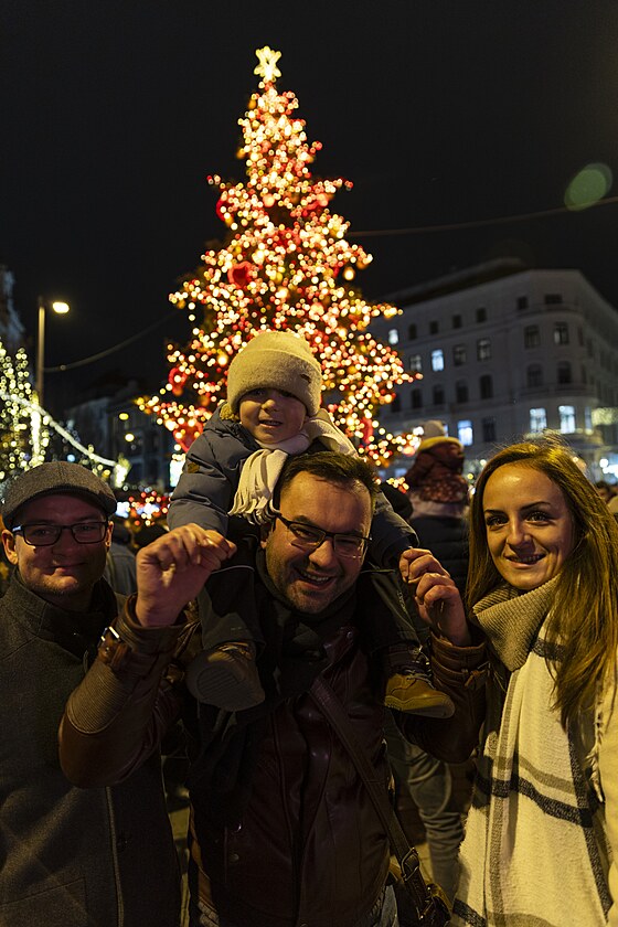 Atmosféra vánočních trhů při rozsvěcení stromu v Brně (22. listopadu 2024)