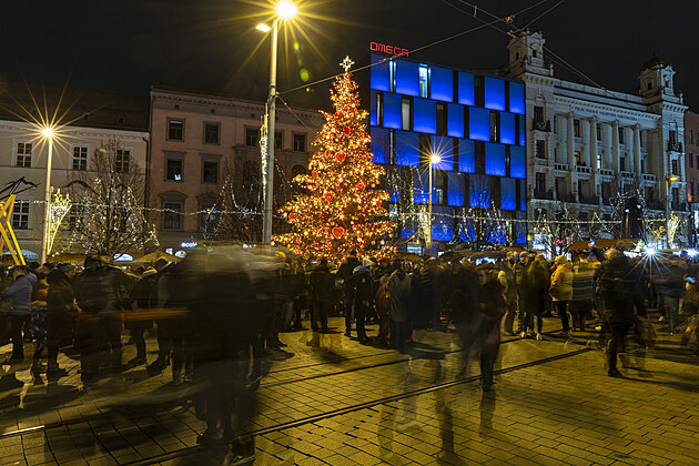 Atmosféra vánočních trhů při rozsvěcení stromu v Brně (22. listopadu 2024)