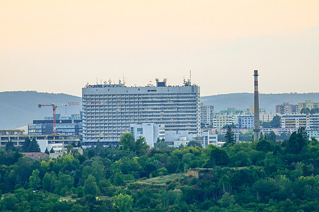 Na střeše brněnského AZ Toweru, který je se 111 metry nejvyšší budovou Česka, se otevřela placená vyhlídka. Vidět je z ní velká část Brna (na snímku nemocnice v Bohunicích), ale i třeba Pálava.