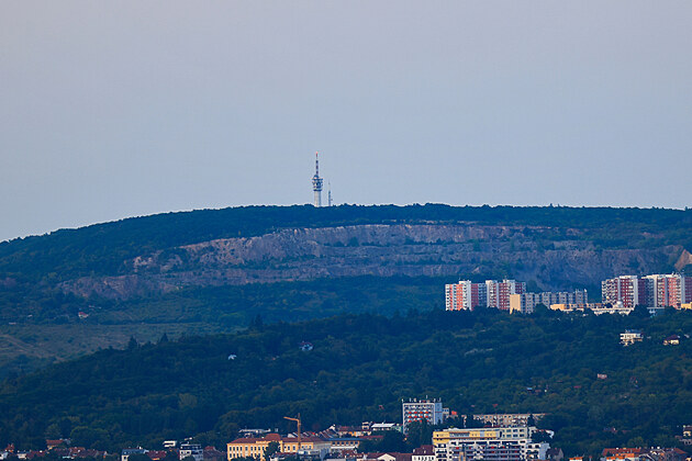 Na střeše brněnského AZ Toweru, který je se 111 metry nejvyšší budovou Česka, se otevřela placená vyhlídka. Vidět je z ní velká část Brna (na snímku lom Hády), ale i třeba Pálava.