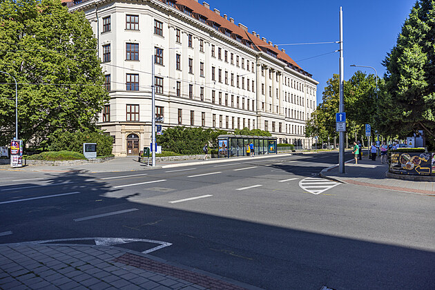 V místě, kde se v Brně kříží Zemědělská ulice s Lesnickou, by měl brzy přibýt přechod pro chodce. (červenec 2025)