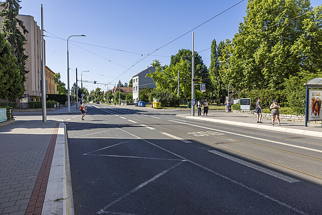 V místě, kde se v Brně kříží Zemědělská ulice s Lesnickou, by měl brzy přibýt přechod pro chodce. (červenec 2025)