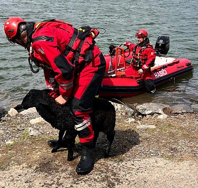 Hasiči zasahovali u letovické přehrady, kde tahali z vody beránka. (červenec 2025)