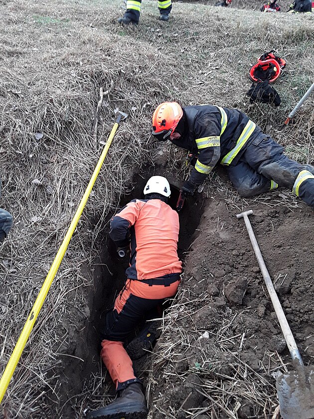 Hasiči na Kyjovsku zachránili ze zasypané železobetonové roury uvězněného psa.