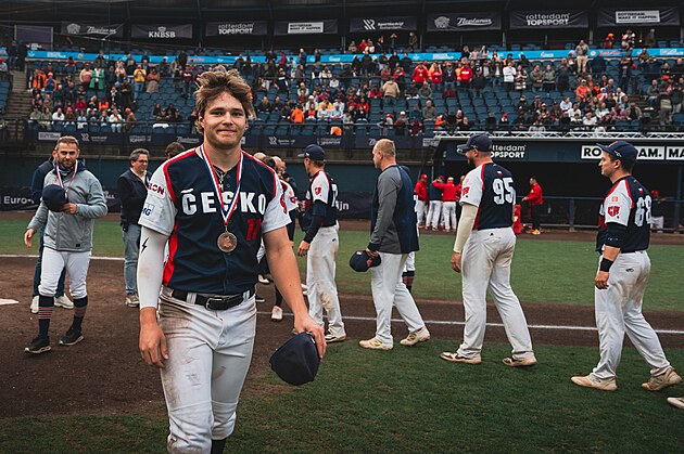 Oslava bronzu z mistrovství Evropy 2025 v Rotterdamu v podání českých baseballistů