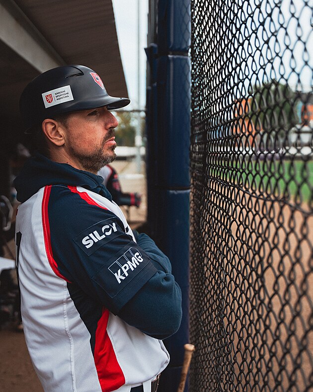 Baseballový trenér Petr Stříbrcký během mistrovství Evropy 2025 v Rotterdamu. U reprezentace působil jako asistent a kouč běžců na metách.