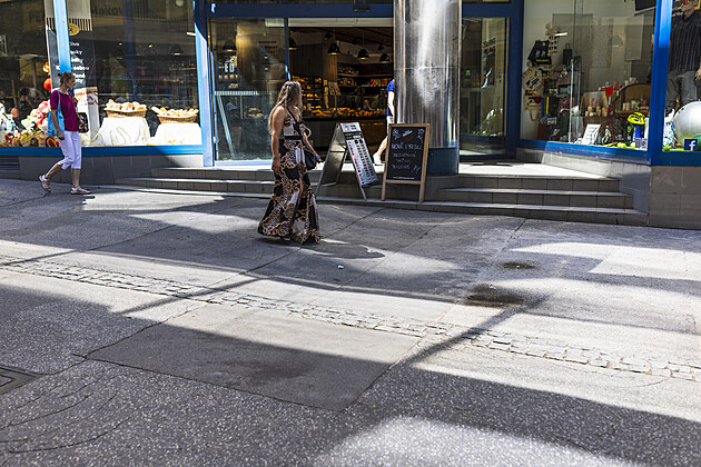 Opravený chodník v České ulici v Brně. Náprava přišla na základě podnětu iDNES.cz. (červenec 2025)