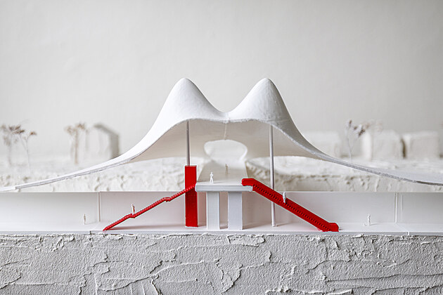 Návrhy budoucích zastávek brněnské podzemní dráhy v podání studentů z Fakulty architektury VUT vystavuje KAM Brno na Zelném trhu. (září 2025)