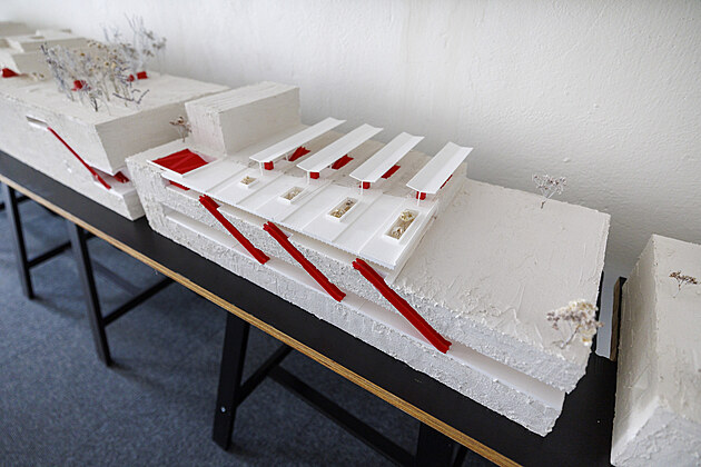 Návrhy budoucích zastávek brněnské podzemní dráhy v podání studentů z Fakulty architektury VUT vystavuje KAM Brno na Zelném trhu. (září 2025)