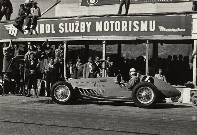 Francouzský jezdec Rosier na talbotu při zastávce v boxech