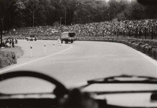 Farinova zatáčka v roce 1986 pohledem řidiče vozu rozvážejícího novináře před závodem