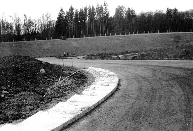 Historické fotografie stavby Masarykova okruhu v Brně a prvních závodů v roce 1987 zaslal Michal Soukup do soutěže iDNES.cz k 25. výročí otevření okruhu. Na snímku Farinova zatáčka (pohled na tribunu G).