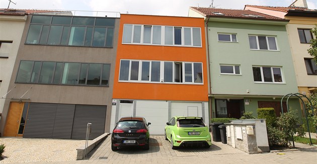 Dům Simony Monyové (oranžová omítka) a jejího muže Borise Ingra v ulici Zázmolí 16 v brněnských Obřanech