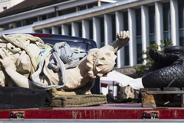 Na kašnu Parnas na Zelném trhu v Brně se vrátila alegorická socha Evropy. Originál z vápence vystřídala replika z umělého kamene. (14. května 2025)