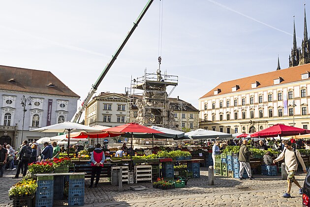 Na kašnu Parnas na Zelném trhu v Brně se vrátila alegorická socha Evropy. Originál z vápence vystřídala replika z umělého kamene. (14. května 2025)