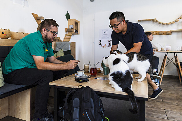 Kočičí kavárna Tři Kočketýři v Brně. (srpen 2025)