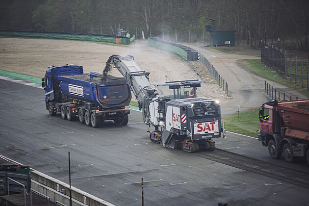 Na brněnském Masarykově okruhu opravují povrch závodní dráhy, aby odpovídal požadavkům MotoGP. Frézování asfaltu probíhá s přesností na jeden milimetr.
