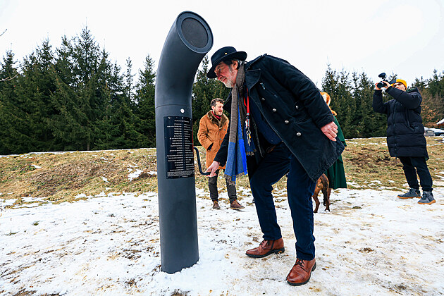 Herec Boleslav Polívka odhalil u Ríšovy studánky v Podkomorských lesích na okraji Brna nový poesiomat. Oživí vzpomínku na román Viléma Mrštíka Pohádka máje, který se odehrává v okolní lesní krajině. (21. února 2025)