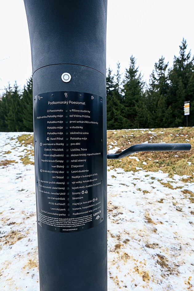 Nový poesiomat v Podkomorských lesích na okraji Brna má oživit vzpomínku na román Viléma Mrštíka Pohádka máje. (21. února 2025)