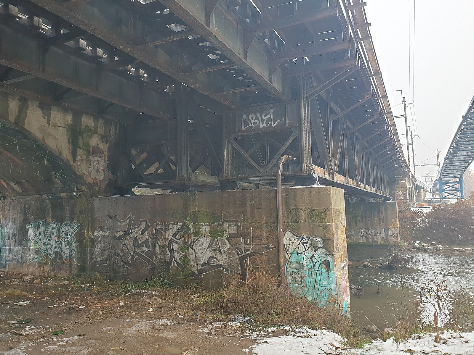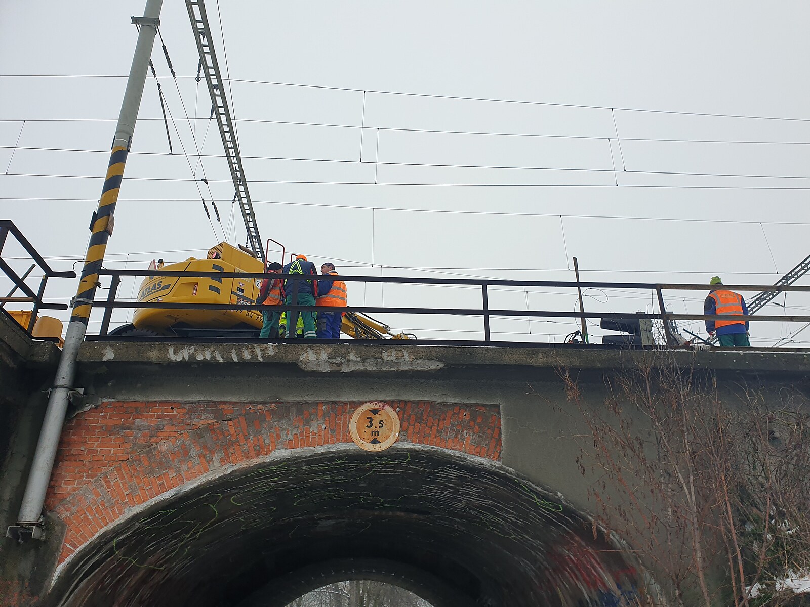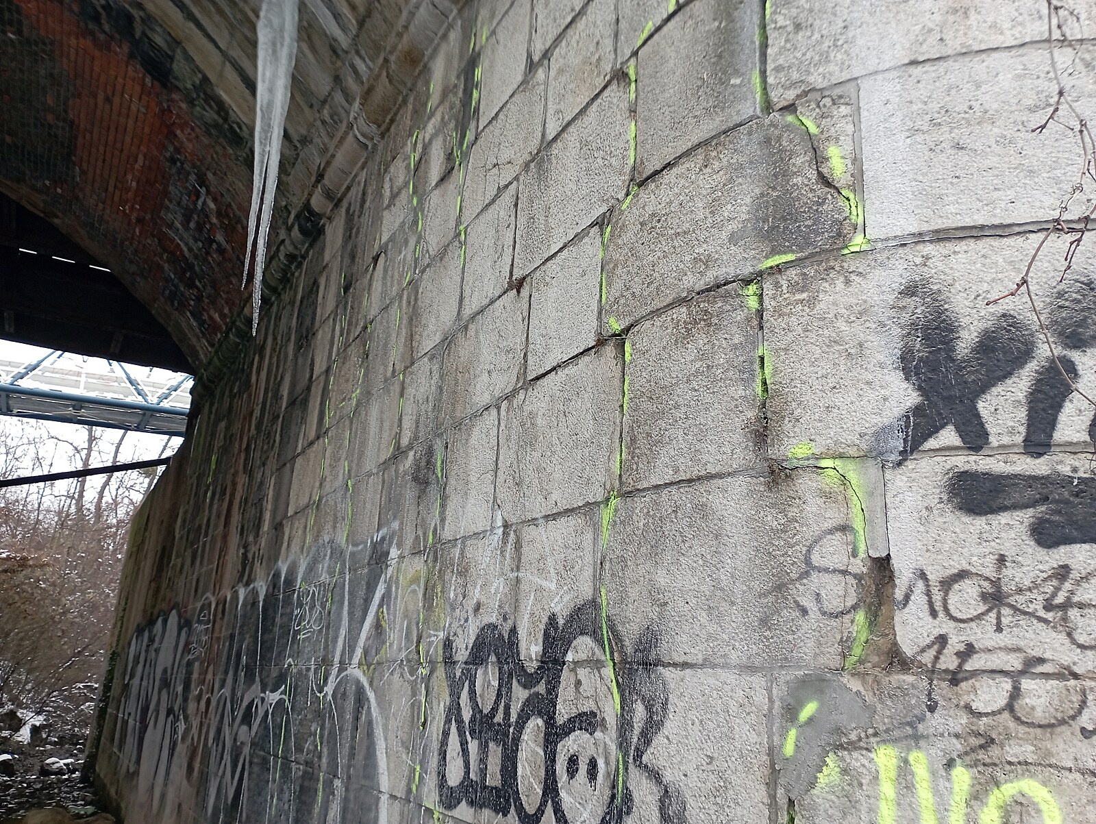 Vyznačená poškození na železničním mostu v Brně (23. prosince 2022)