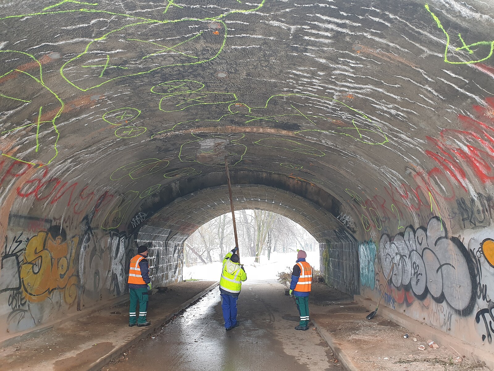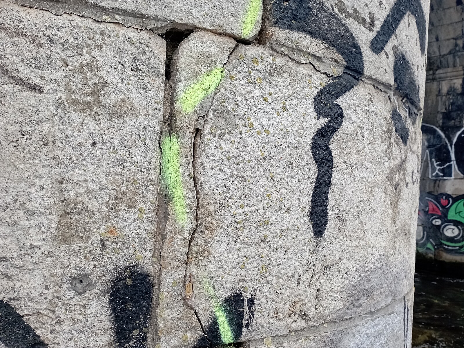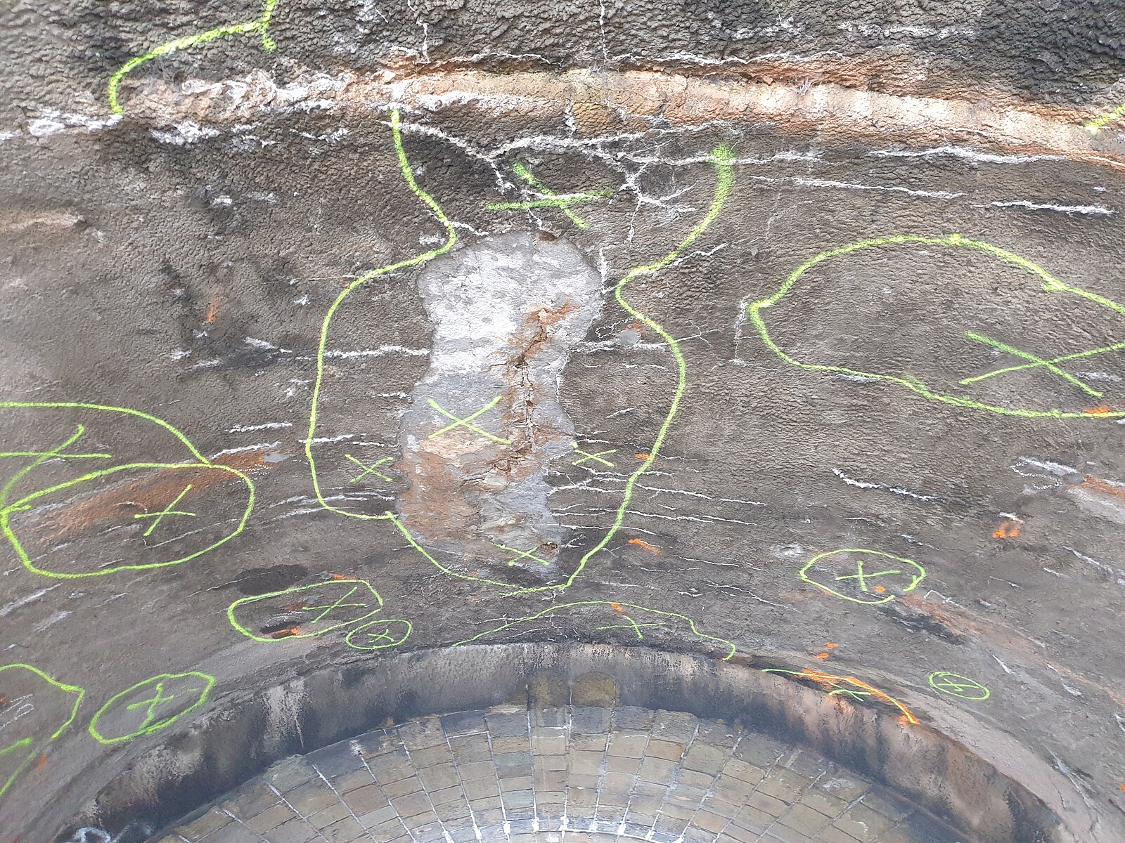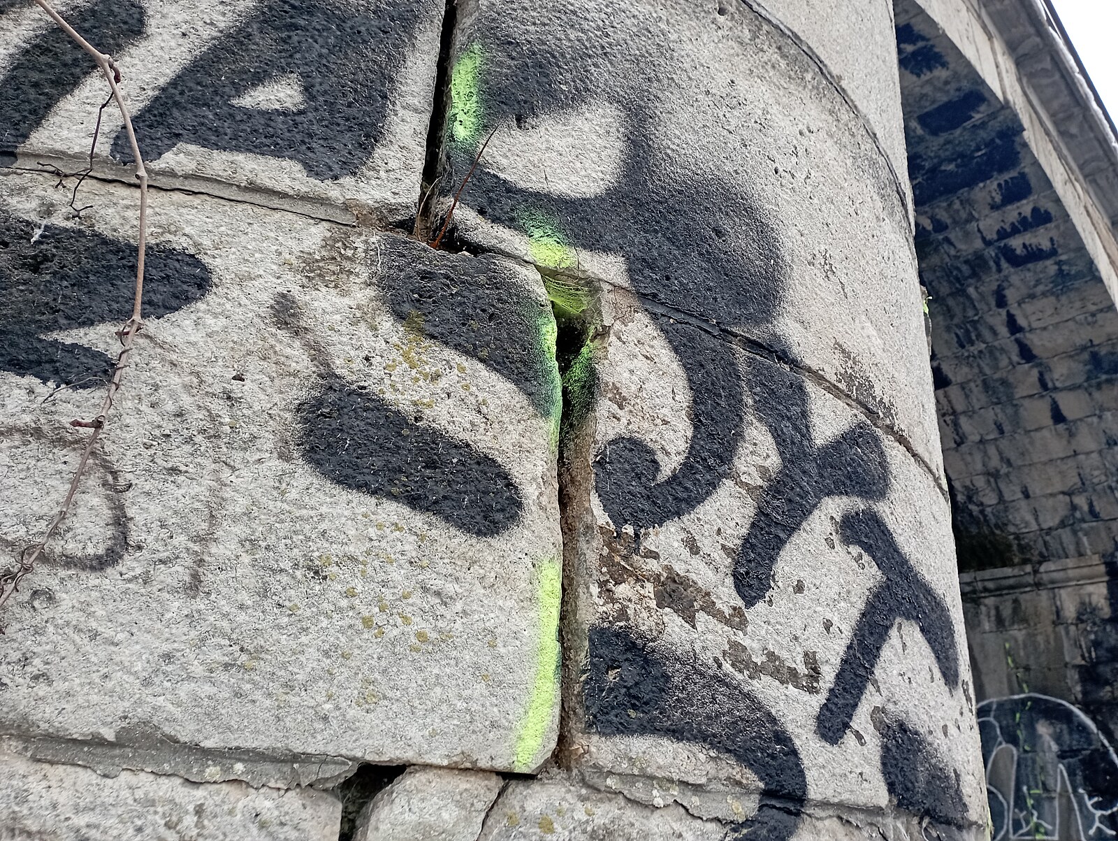 Vyznačená poškození na železničním mostu v Brně (23. prosince 2022)
