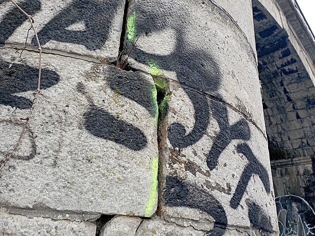 Poškozené pilíře železničního mostu nedaleko hlavního nádraží v Brně. V jeho blízkosti Brno buduje protipovodňová opatření.