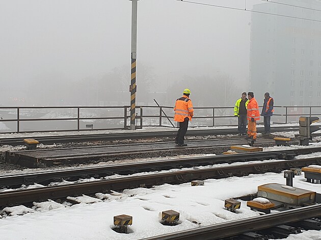 Dělníci usazují provizorní mostní konstrukci. (23.12.2022)