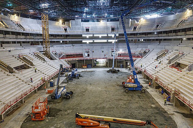 Pohled do rozestavěné multifunkční arény v Brně. Ponese název T-Mobile arena. (22. října 2025)