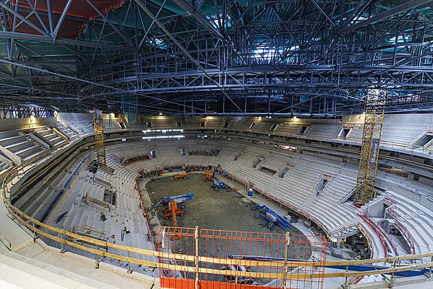 Pohled do rozestavěné multifunkční arény v Brně. Ponese název T-Mobile arena. (22. října 2025)