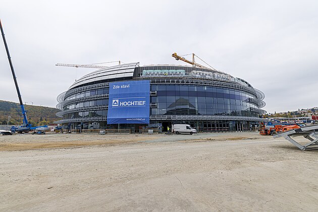 Pohled na rozestavěnou multifunkční arénu v Brně. Ponese název T-Mobile arena. (22. října 2025)