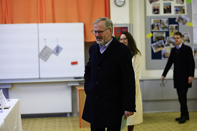 Premiér Petr Fiala (ODS) u doplňovacích senátních voleb v Brně. Voliči se mohli vůbec poprvé prokázat eDokladem. (17. ledna 2025)