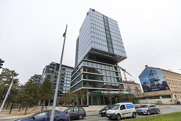 Nová supermoderní kancelářská budova s označením I v brněnském areálu Vlněna. Objekt za 700 milionů korun je vysoký 62 metrů, má prosklenou pilovitou fasádu, šestnáct nadzemních podlaží a na střeše přípravu na přistávcí plochu pro dronovou poštu. (18. 12. 2024)