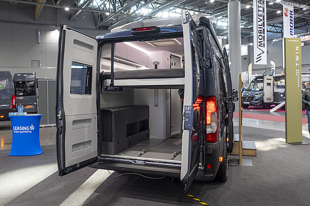 Praktické vestavby často kombinují prostor pro náklad i pro přespání, například pro mechaniky na závodech.