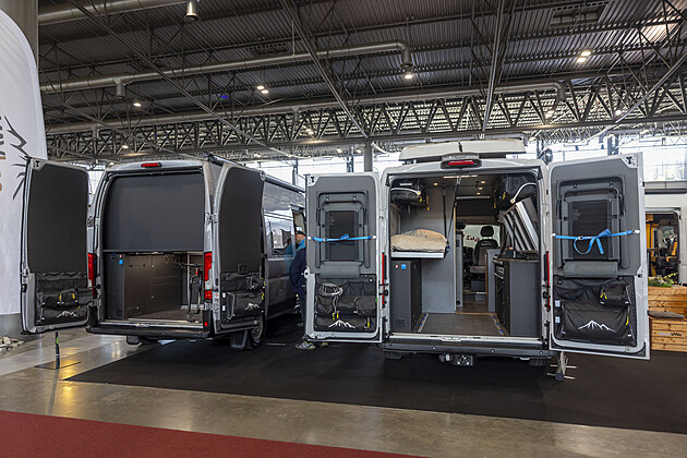 Praktické vestavby často kombinují prostor pro náklad i pro přespání, například pro mechaniky na závodech.