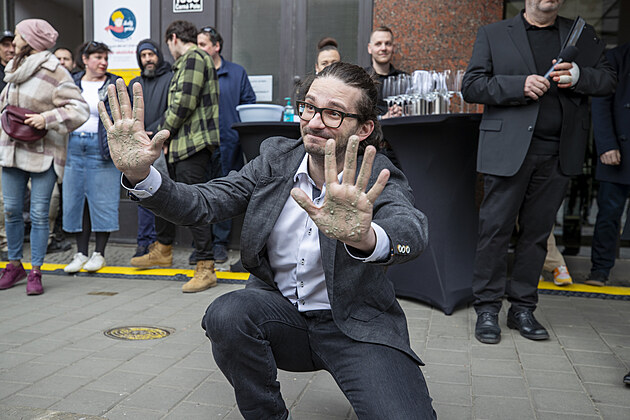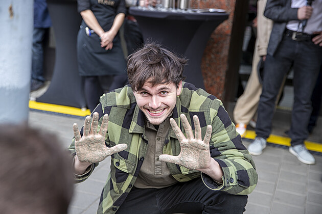 Své ruce do chodníku slávy před Městským divadlem Brno otiskl Lukáš Janota. (27. března 2024)