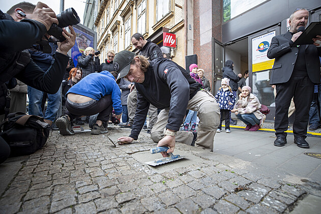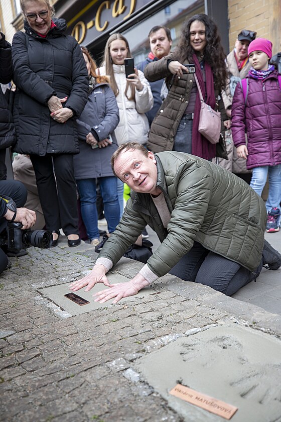 Své ruce do chodníku slávy před Městským divadlem Brno otiskl Libor Matouš. (27. března 2024)