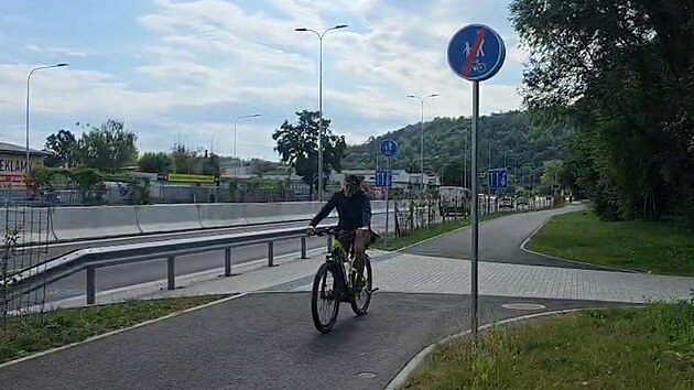 Není to navíc jediná překážka na trati. O kus dál musejí cyklisté dávat pozor u vjezdu do zázemí policie, po dalších pár set metrech pak už stezka přímo končí. Zatím totiž není dokončená. Pokračuje až o půl kilometru dál.