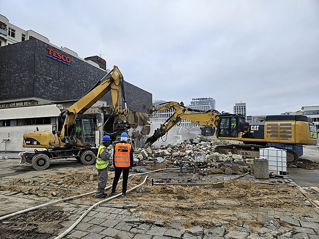 Obchodní dům Tesco u brněnského hlavního nádraží jde k zemi. (13. ledna 2025)