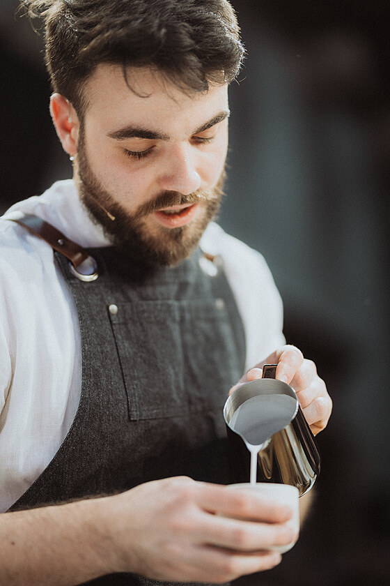 Denis Kramář na soutěži Barista roku (26. února 2023)
