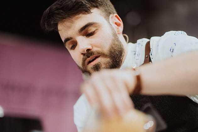 Denis Kramář na soutěži Barista roku (26. února 2023)