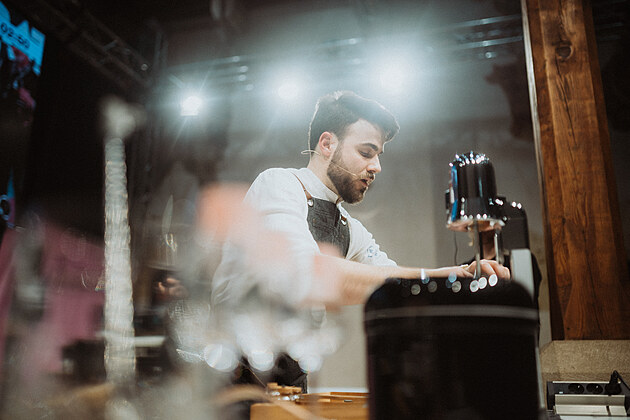Denis Kramář na soutěži Barista roku (26. února 2023)